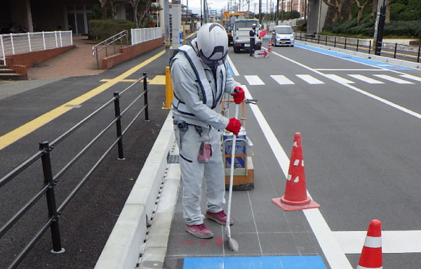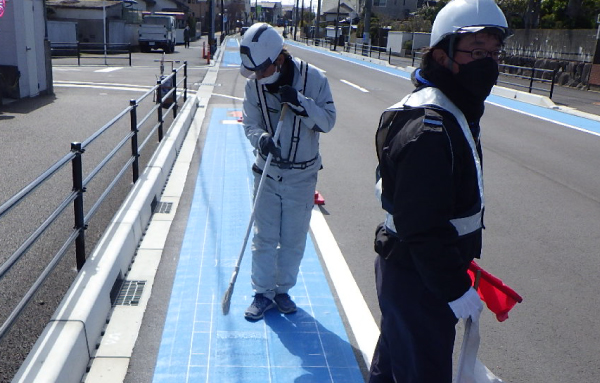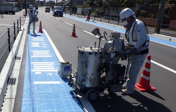 一般道路・自転車専用道路においてドライバーと歩行者が安全に通行できるように、区画線の新設・塗替・消去・線形変更等を行っています。