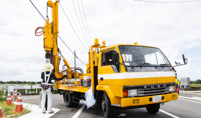 創業以来、交通安全設備施工業者として培ってきた高い専門性が当社の強みの一つである。山や狭小な地形での施工、特殊な工法での依頼にも対応できる技術力の高さは数多くの受注につながっているとともに、同業他社や関連企業からの高い信頼につながっている。