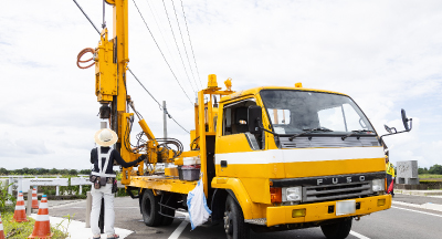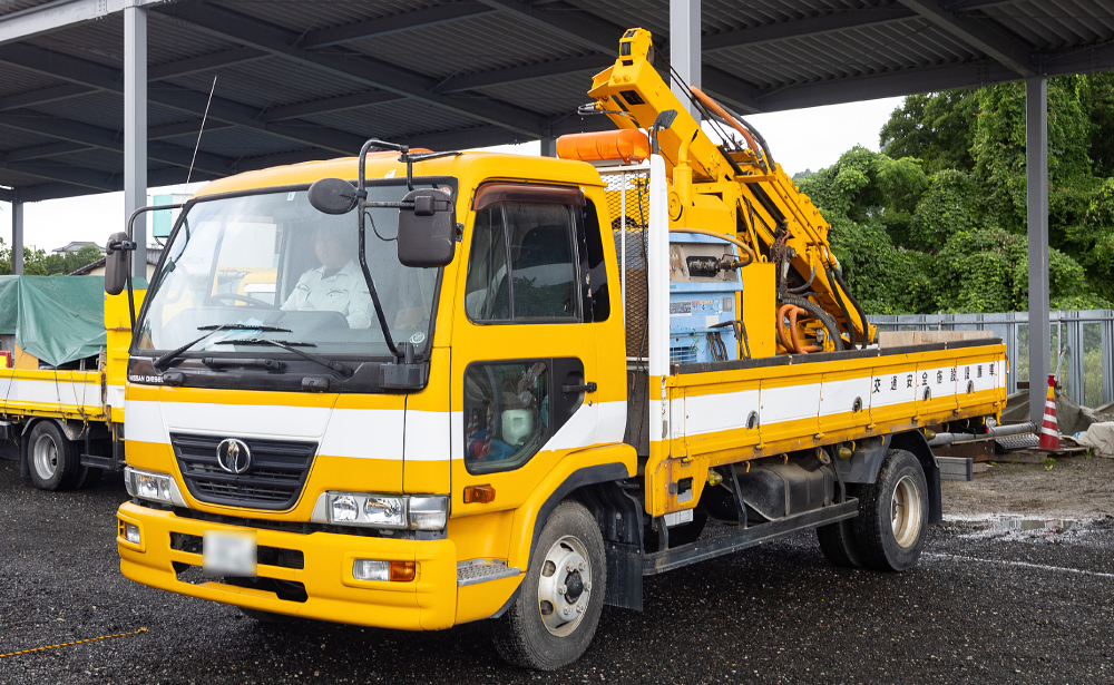 当社の強みとして、幅広く且つ専門性の高い依頼を数多くこなすために、様々な車両及び施工機械を保有している。